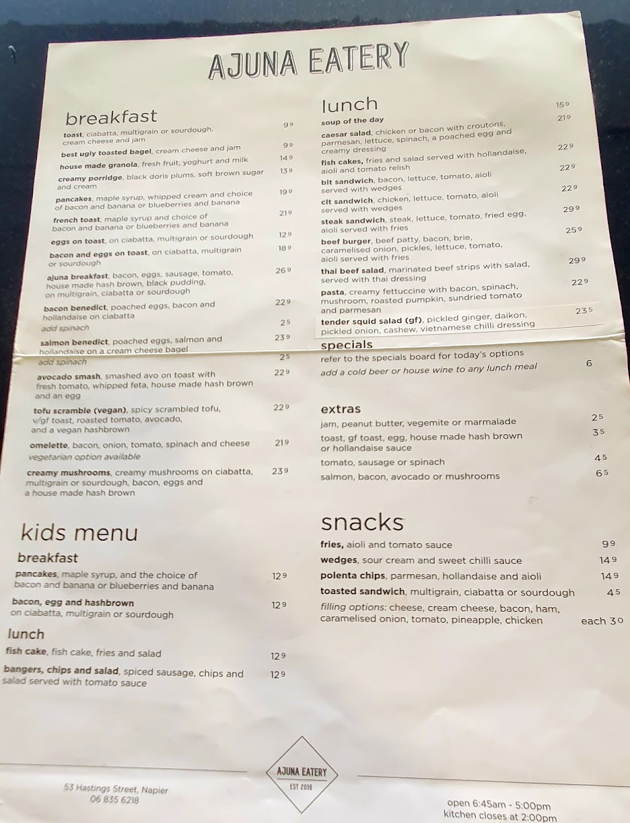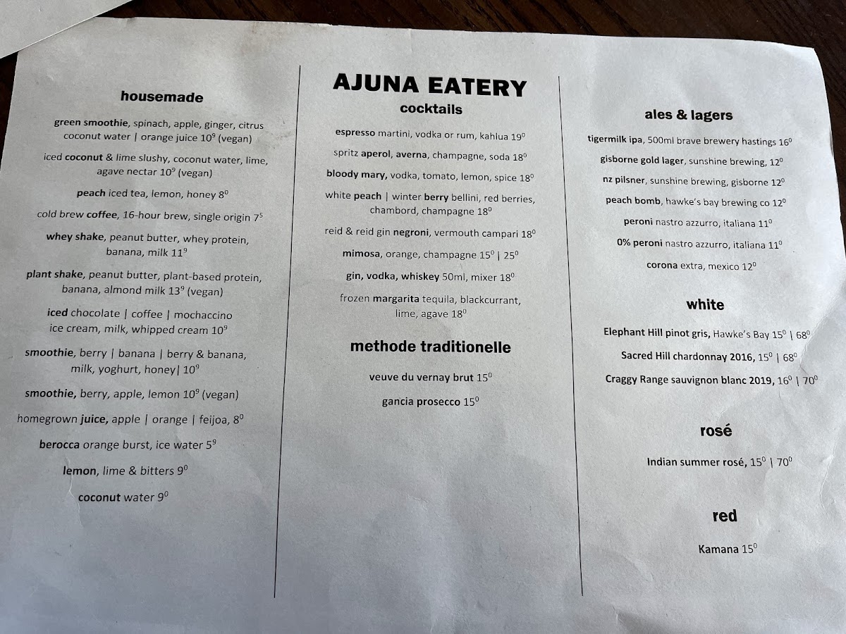 Ajuna Eatery Menu